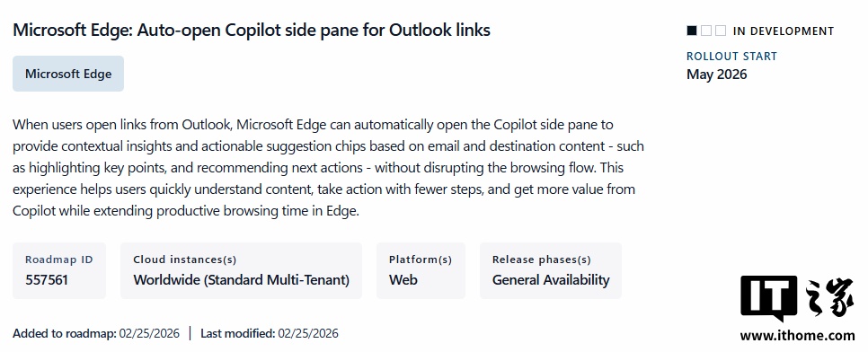 IT之家 2 月 26 日音尘,据 Windows Central 报说念,微软仍在向用户强行彭胀 AI,这解说微软的每一款居品齐不错成为这家科技巨头自家处事的告白牌。微软 Edge 行将推出一项新功能:当用户在 Outlook 里点击流畅时,会自动在侧边栏通达 Copilot。