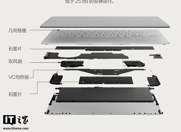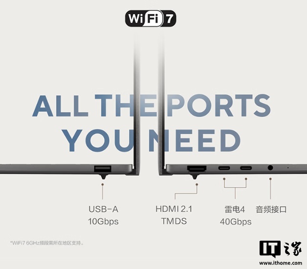 该机搭载 16 中枢 16 线程英特尔酷睿 Ultra 7-356H 处治器,匹配 32GB LPDDR5X RAM 和 1TB PCIe 4.0 SSD,使用双电扇 + 均热板 + 石墨片散热。