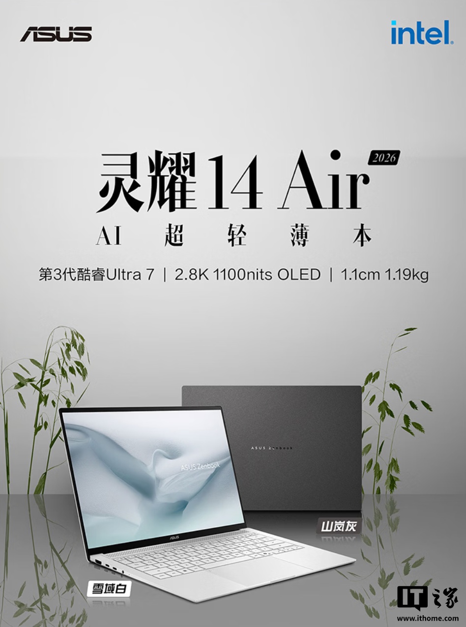 IT之家 2 月 25 日音问,华硕现已在京东上架灵耀 14 Air 2026 札记本,该机搭载酷睿 Ultra 7-356H 处治器,匹配 32GB RAM 和 1TB SSD,订价为 8999 元。