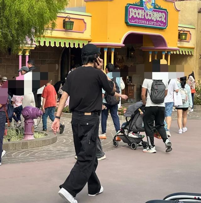 被拍到的工夫,他正在和东谈主打电话,似乎是在交流位置,看来此次他并不是独自去迪士尼。