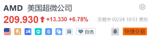 截止发稿,受此利好音问推动,AMD股价大涨近7%,报209.93好意思元;而meta股价小幅走弱,微跌0.23%,报635.79好意思元。