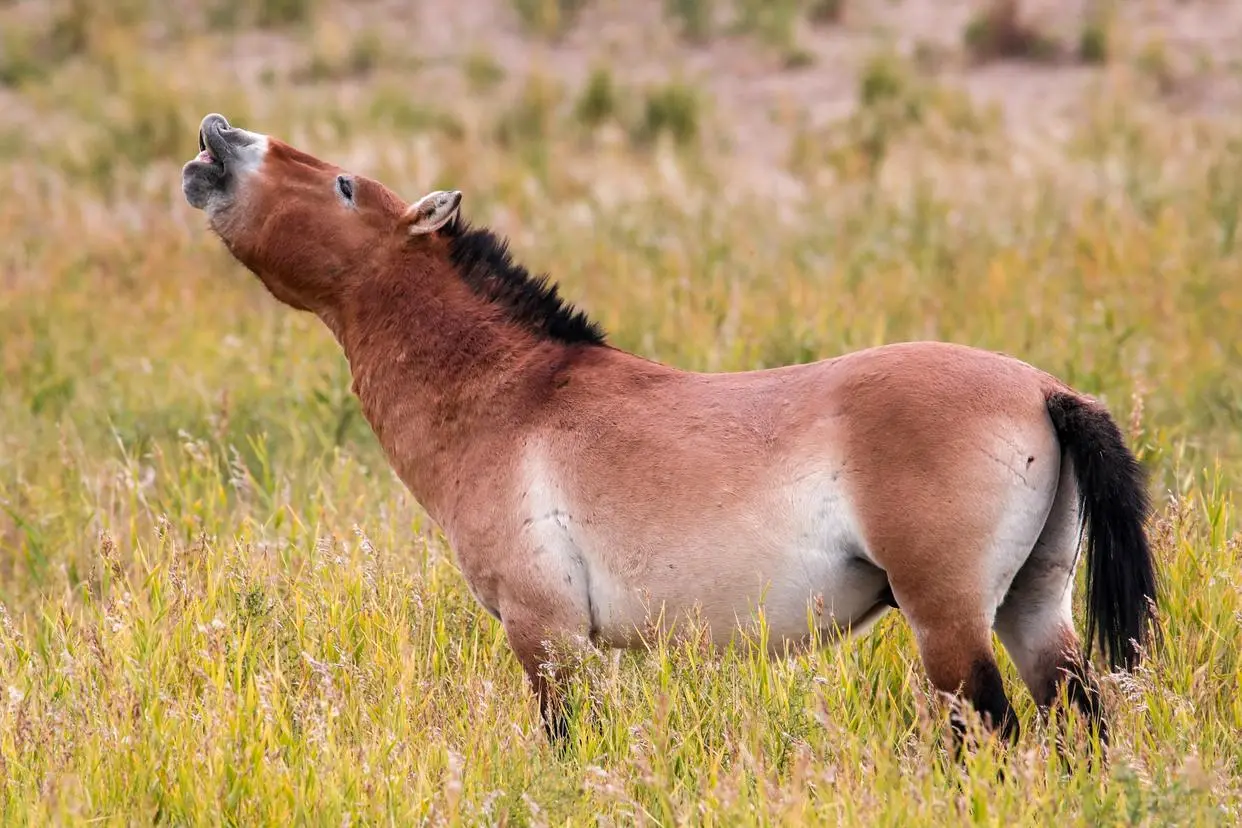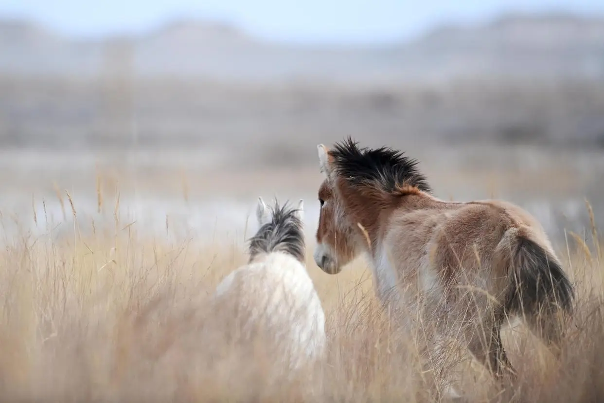 普氏野马原产于中国新疆准噶尔盆地和蒙古国干旱萧索草原地带,是领有6000万年漫前程化史的“活化石”。